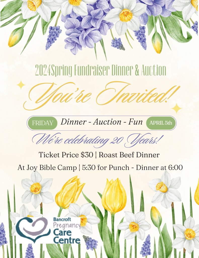 Spring Auction & RaffleThis year’s Spring Auction is taking place on Friday, April 5 at Joy Bible Camp. Please see the poster below for details. For tickets, please call/text the Centre at 613-332-4673.